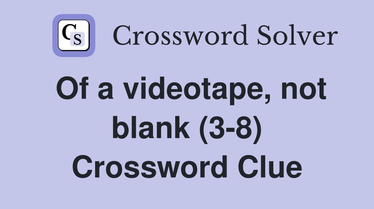Of a videotape not blank (3 8) Crossword Clue Answers Crossword Solver
