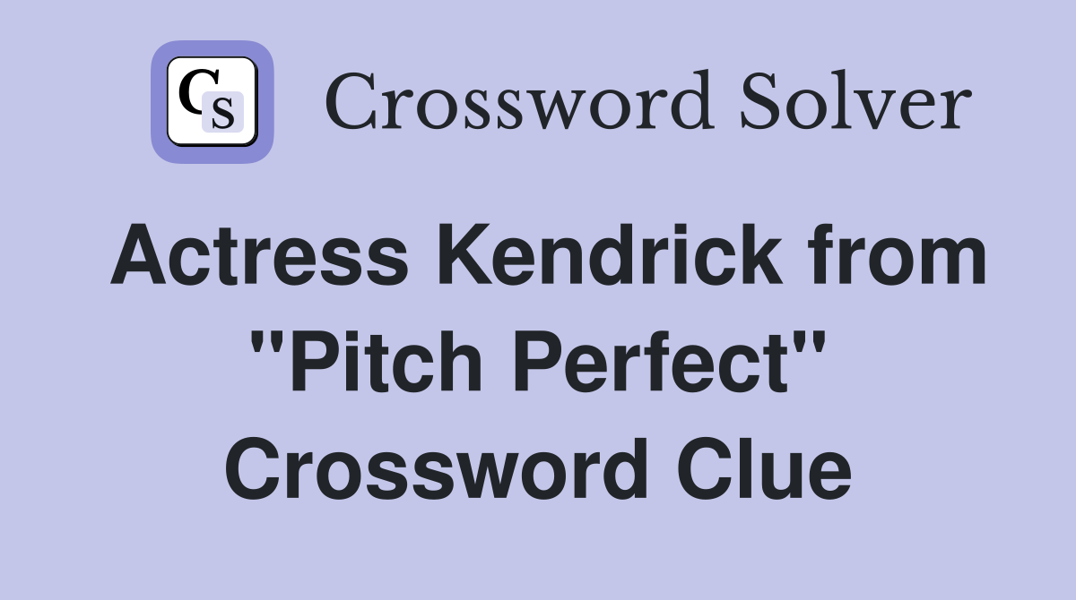 Actress Kendrick from quot Pitch Perfect quot Crossword Clue Answers