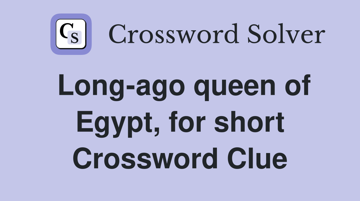 Long ago queen of Egypt for short Crossword Clue Answers Crossword