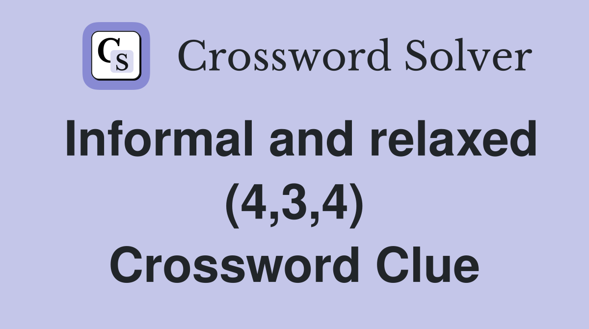Informal and relaxed (4 3 4) Crossword Clue Answers Crossword Solver