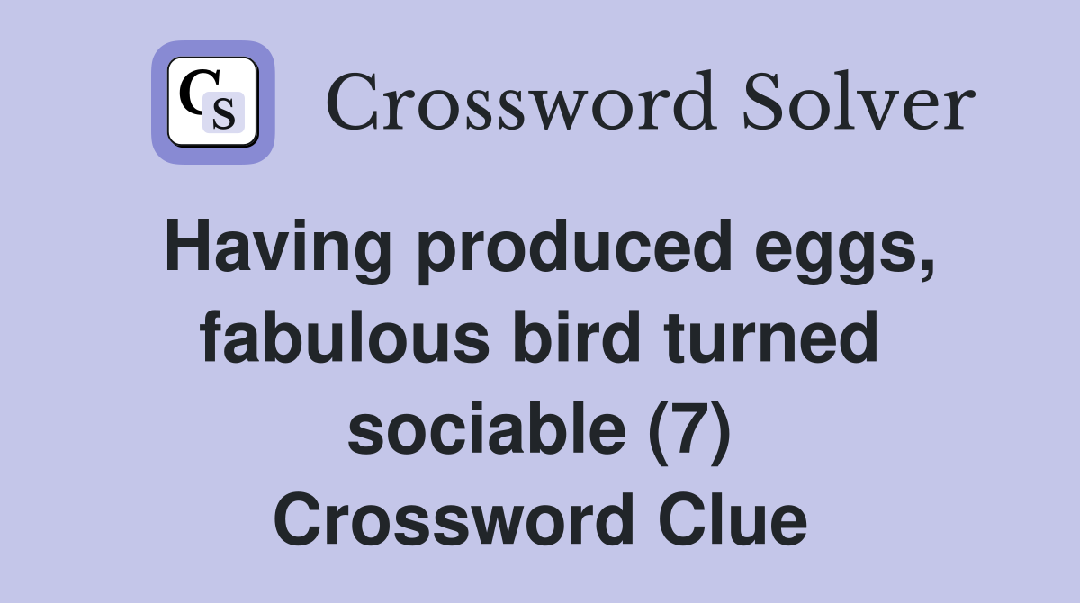 Having produced eggs fabulous bird turned sociable (7) Crossword