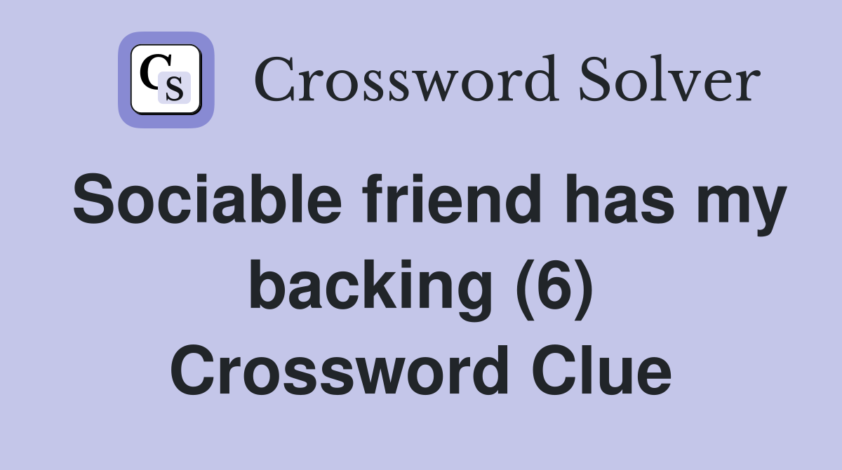 Sociable friend has my backing (6) Crossword Clue Answers Crossword
