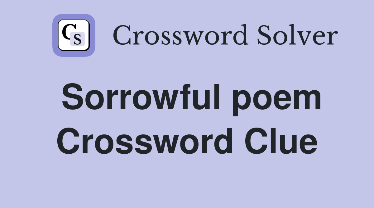 Sorrowful poem Crossword Clue Answers Crossword Solver