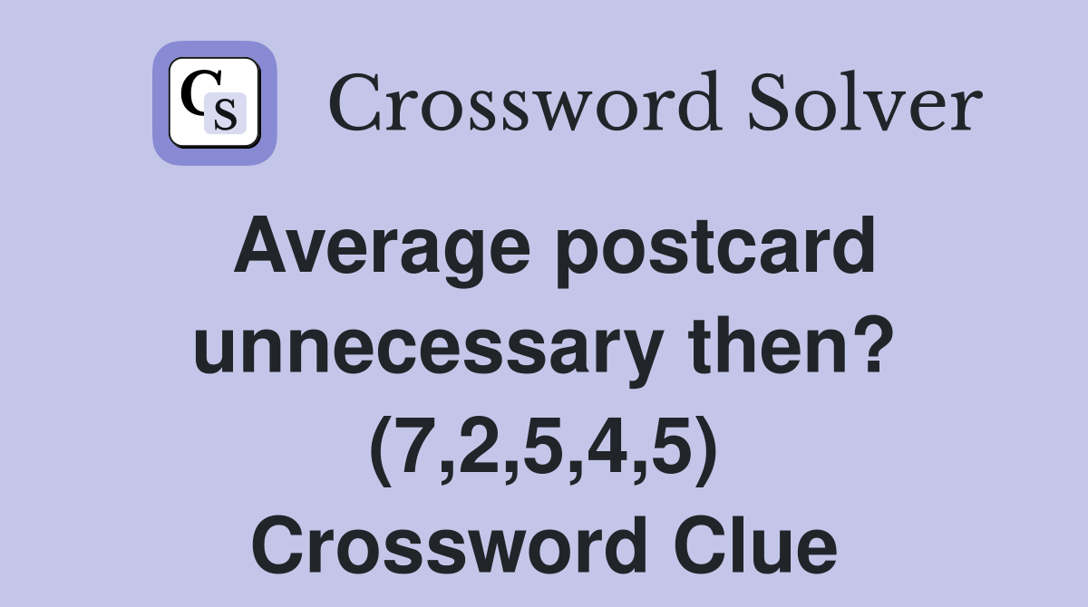 Average postcard unnecessary then? (7 2 5 4 5) Crossword Clue Answers