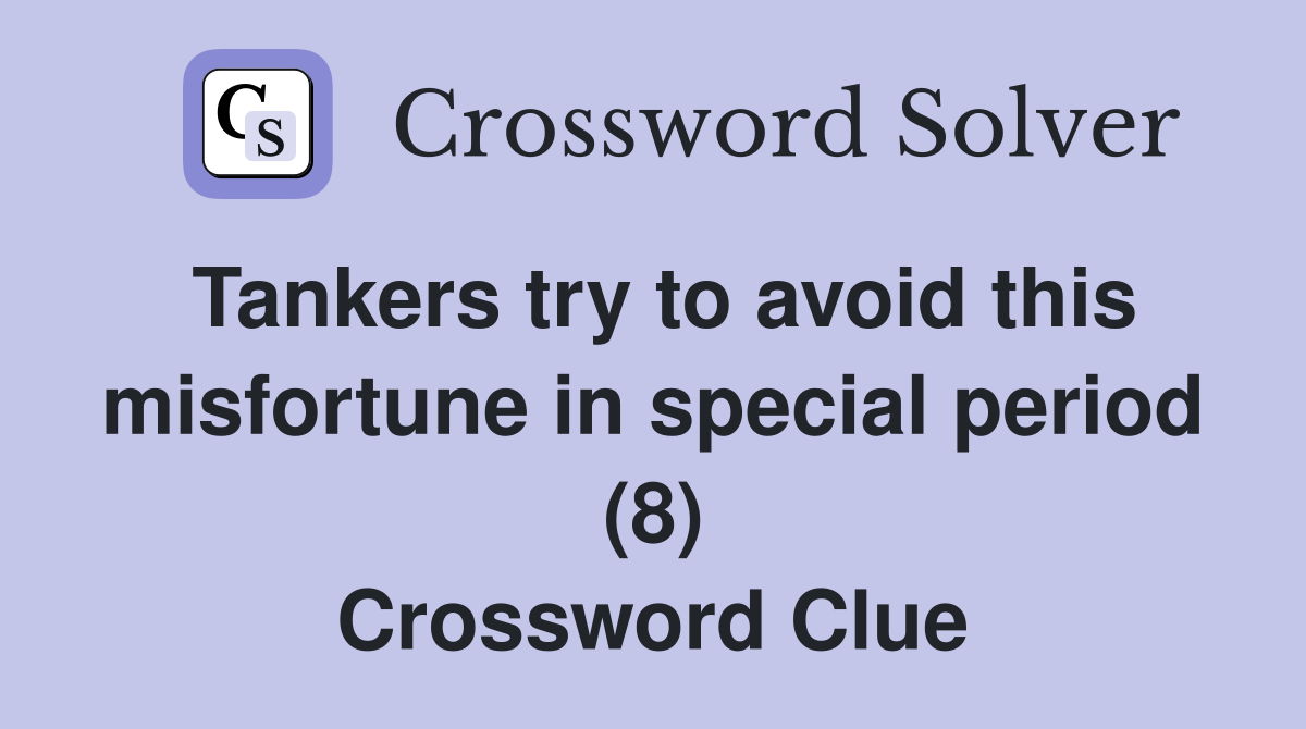 Tankers try to avoid this misfortune in special period (8) Crossword