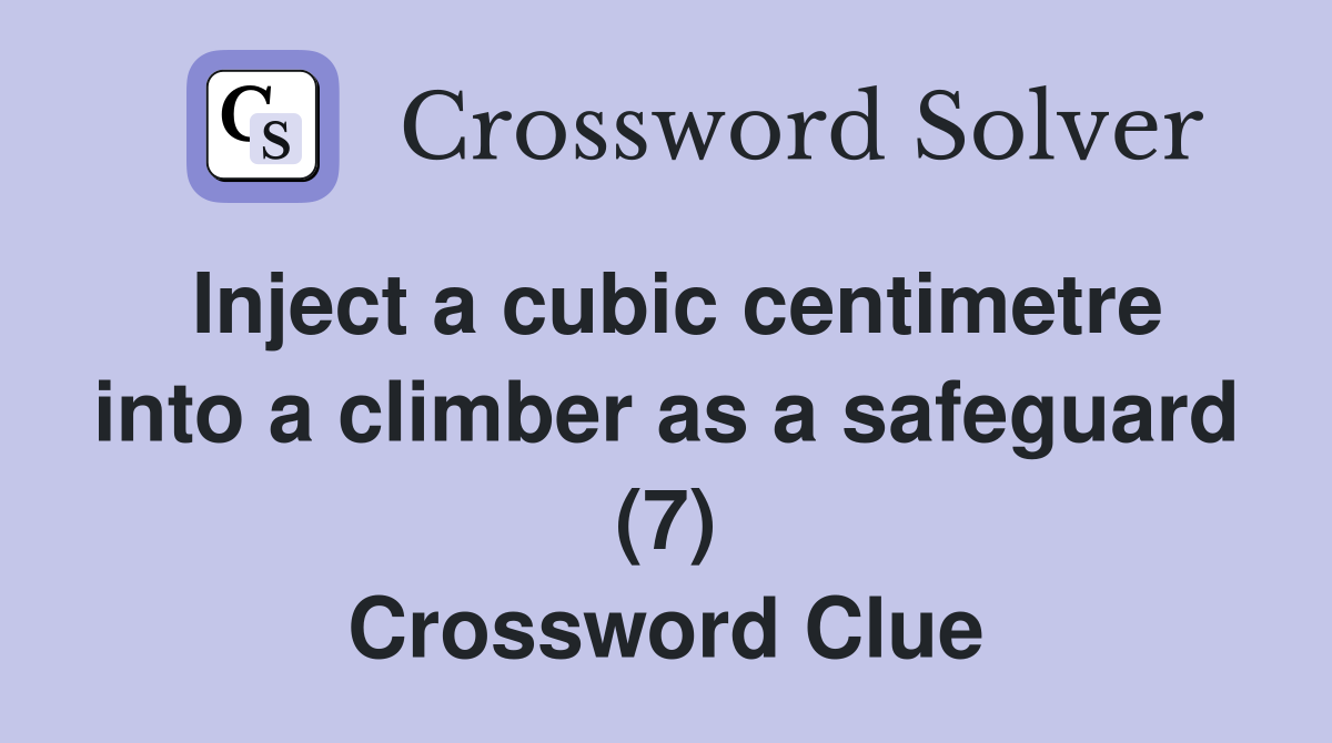 Inject a cubic centimetre into a climber as a safeguard (7) Crossword