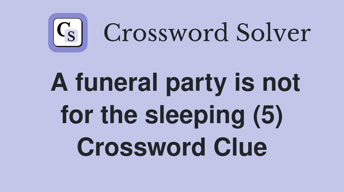 A funeral party is not for the sleeping (5) Crossword Clue Answers