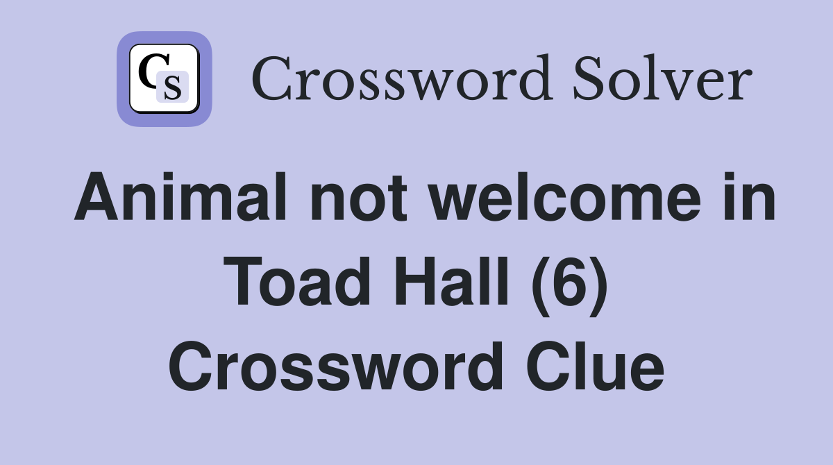 Animal not welcome in Toad Hall (6) Crossword Clue Answers