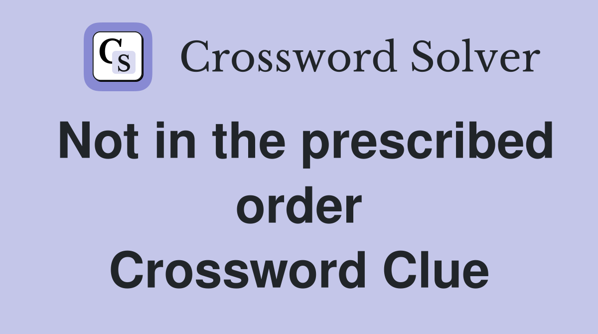 Not in the prescribed order Crossword Clue Answers Crossword Solver