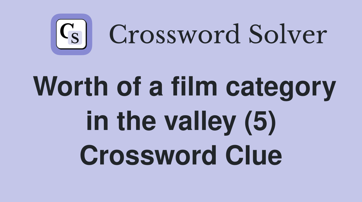 Worth of a film category in the valley (5) Crossword Clue Answers
