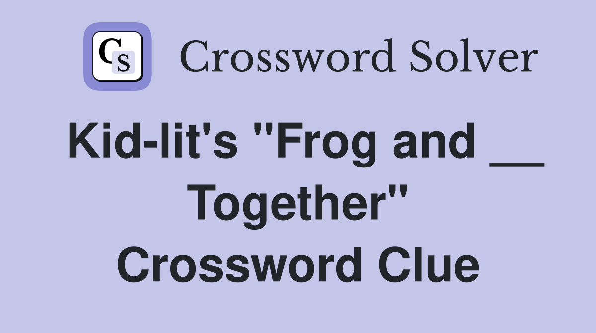 Kid lit #39 s quot Frog and Together quot Crossword Clue Answers Crossword