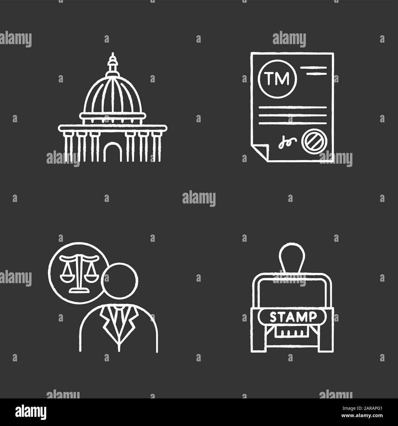 Notary services chalk white icons set on black background Apostille