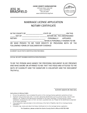 Fillable Online MARRIAGE LICENSE APPLICATION NOTARY CERTIFICATE Fax