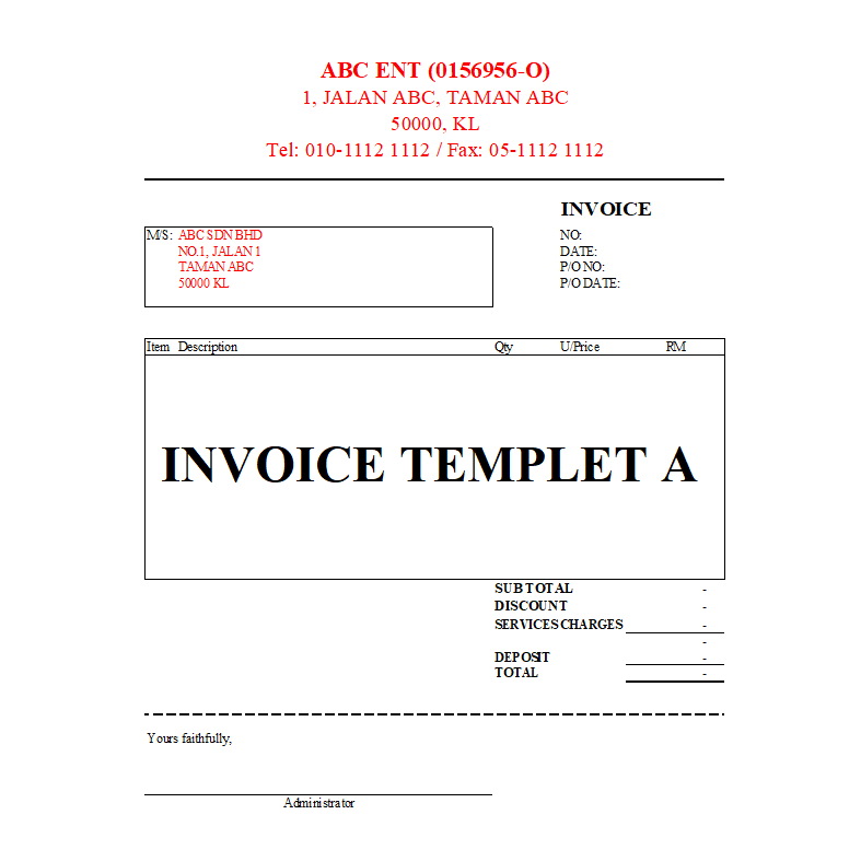 INVOICE TEMPLATE (EXCEL FORMET) Shopee Malaysia