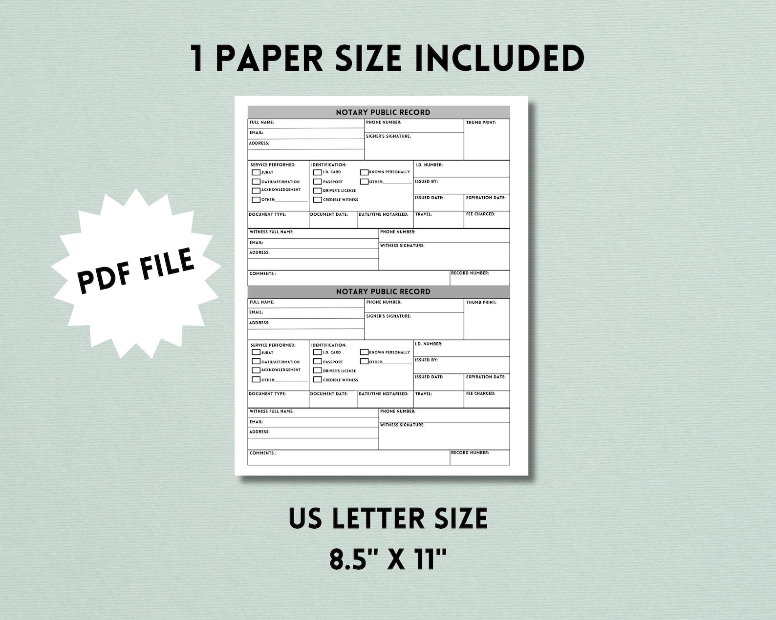 Printable Notary Journal Notary Log Printable PDF Notary Record