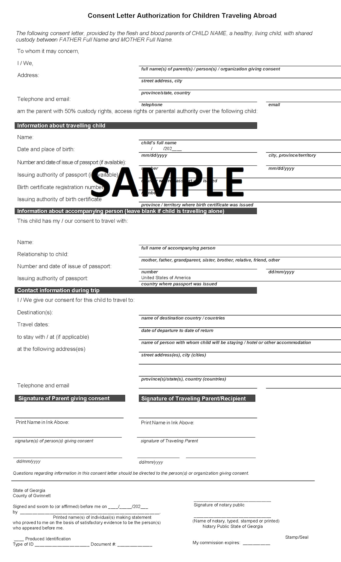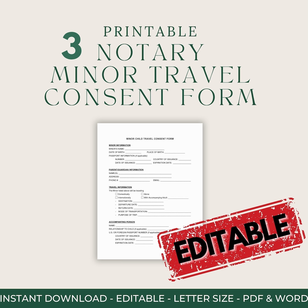 International Travel Consent Notary Form for Minor Child 1 Page Etsy
