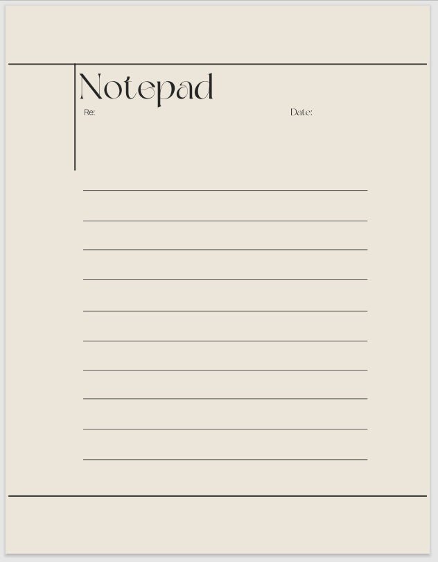 Printable Minimalist Beige Notepad Sheet Lined Notepad Paper Notepad