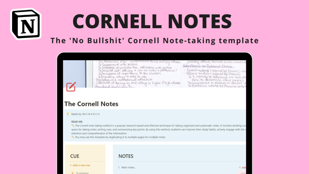 The #39 No Bullshit #39 Cornell Note taking notion template : A popular