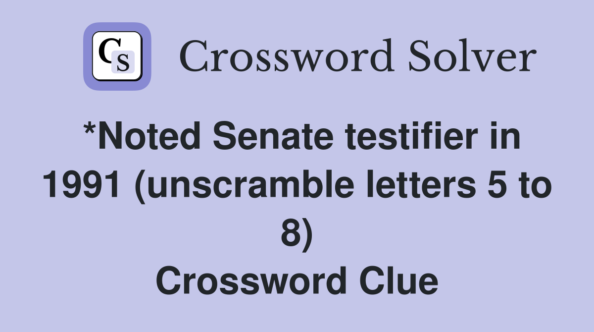 *Noted Senate testifier in 1991 (unscramble letters 5 to 8) Crossword