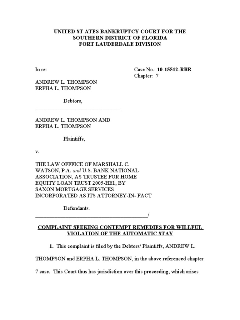 Complaint Adversarial Proceeding (Bankruptcy) Mortgage Loan
