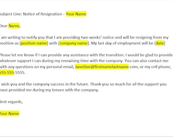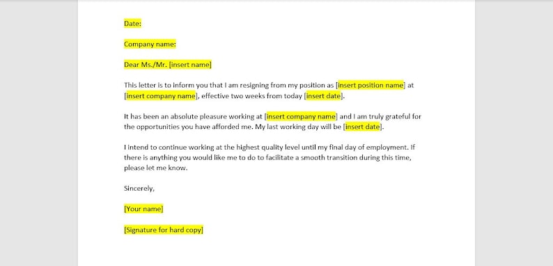 Two Weeks Notice Resignation Letter Sample Word Editable