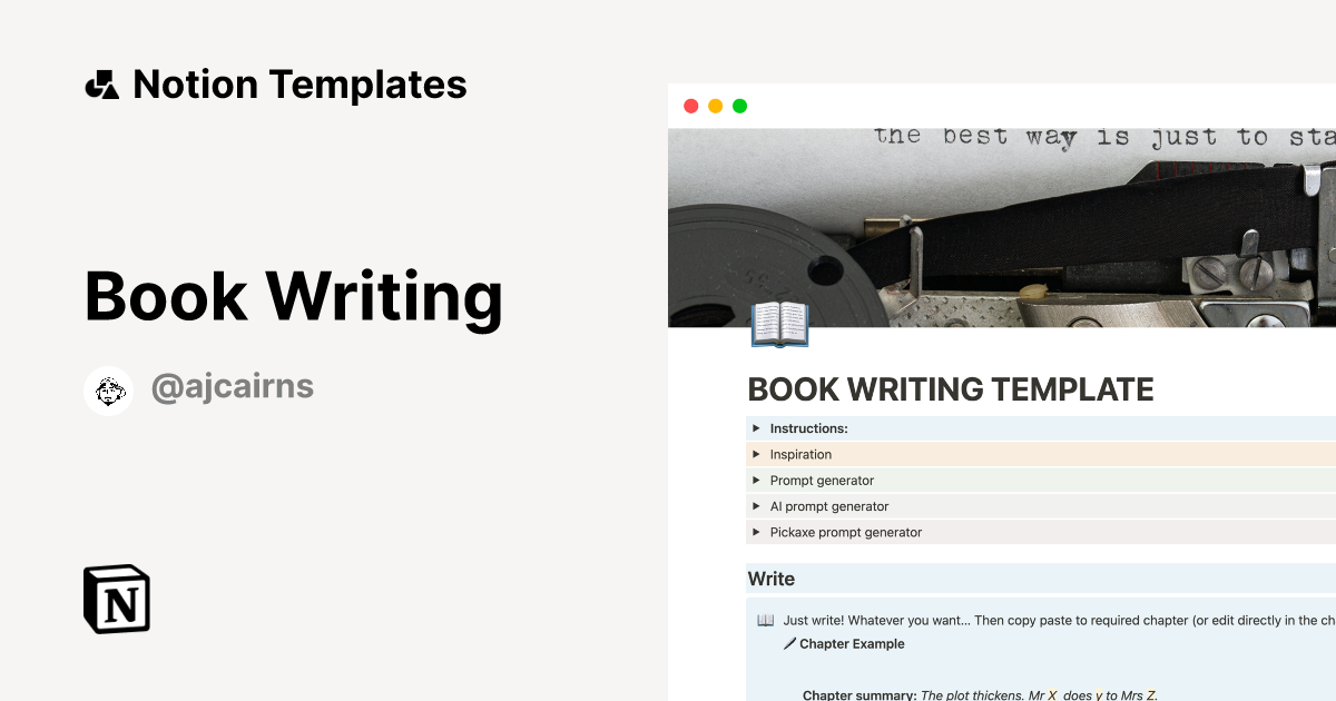 Book Writing Template by ajcairns Notion Marketplace