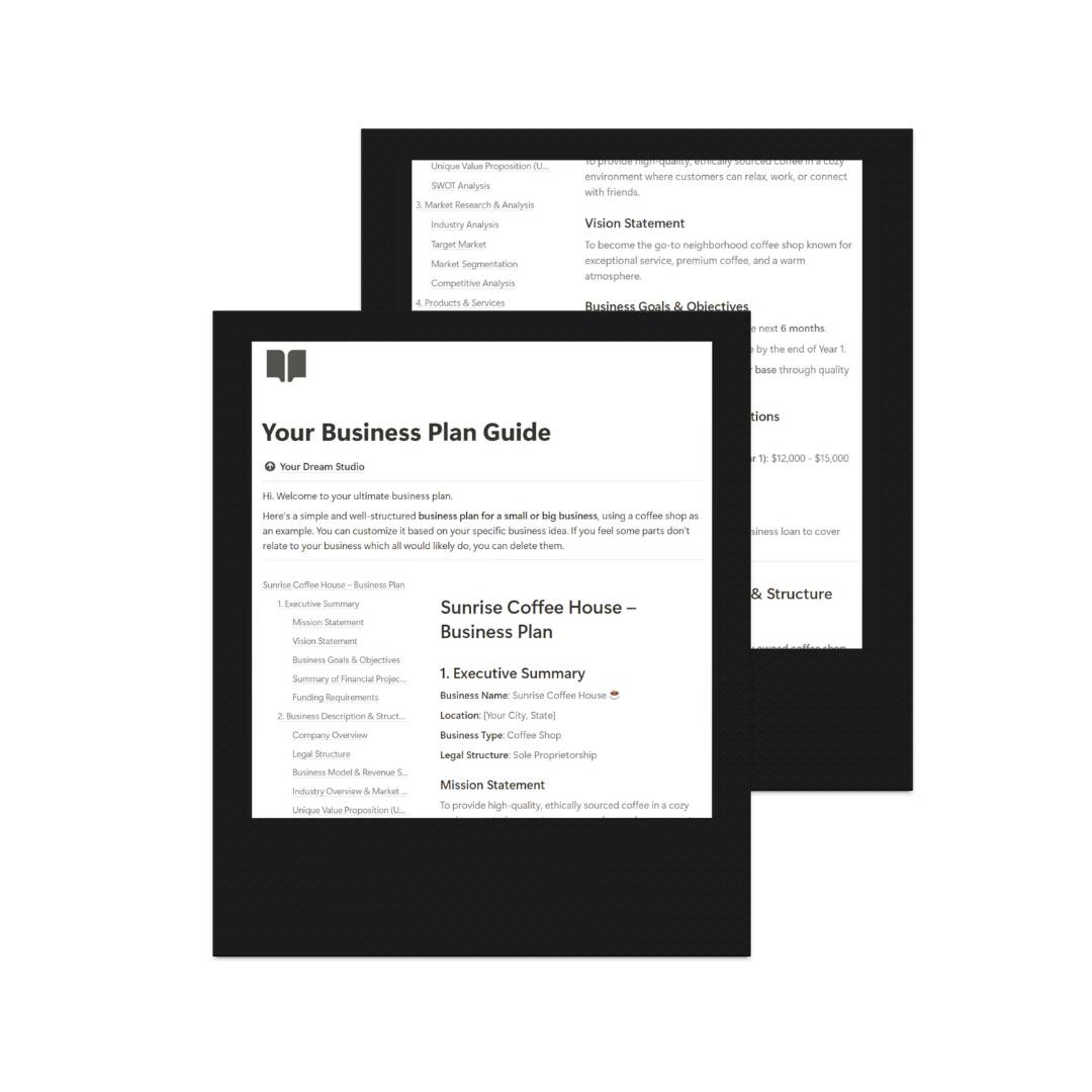 FREE Business Plan Notion Template Your Dream Studio