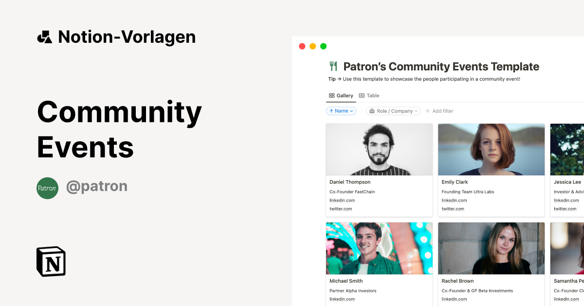 Community Events Vorlage von Patron Notion Marketplace