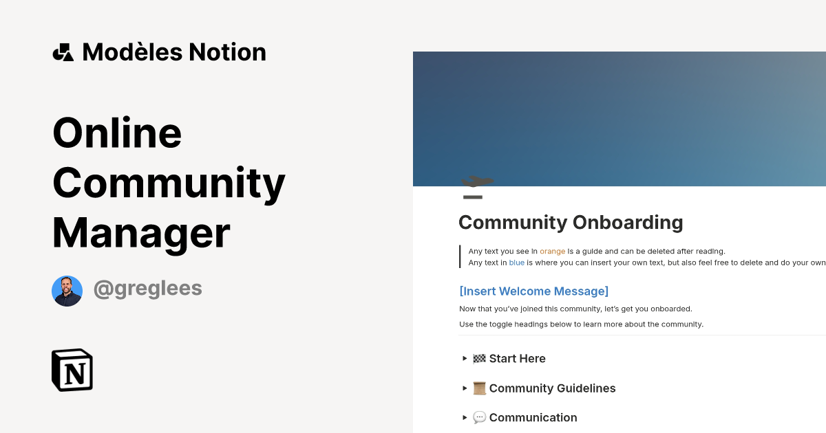 Modèle Online Community Manager Marketplace Notion