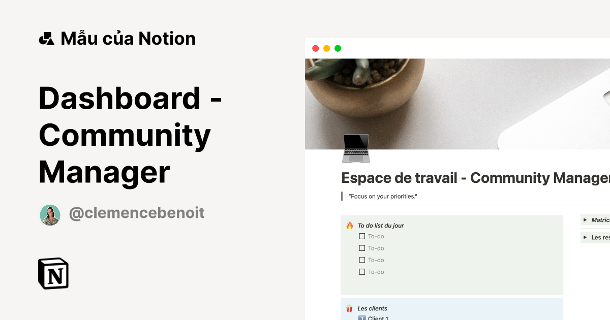 Dashboard Community Manager Mẫu do Clem tạo Thị trường Notion