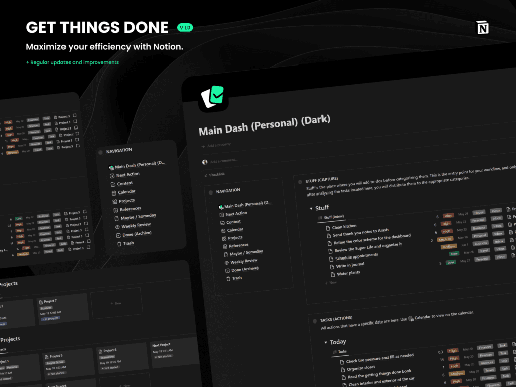 5 Notion GTD Templates Getting Things Done Dashboards Gridfiti
