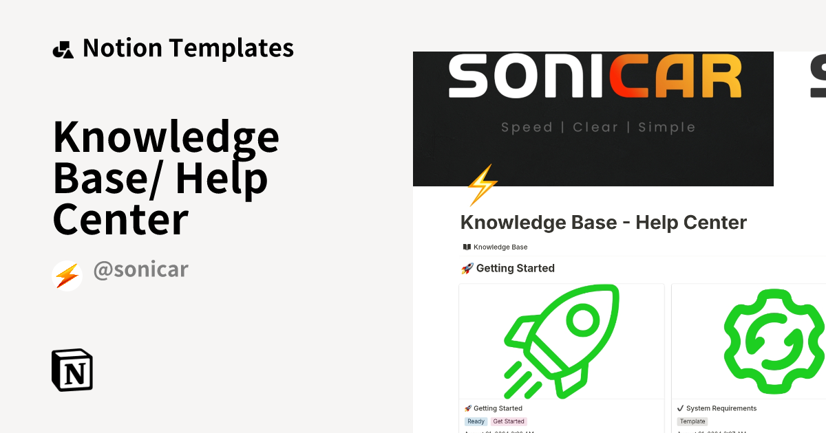 Knowledge Base/ Help Center Template by sonicar Notion Marketplace