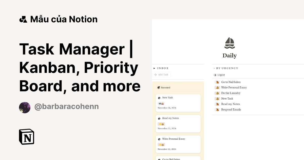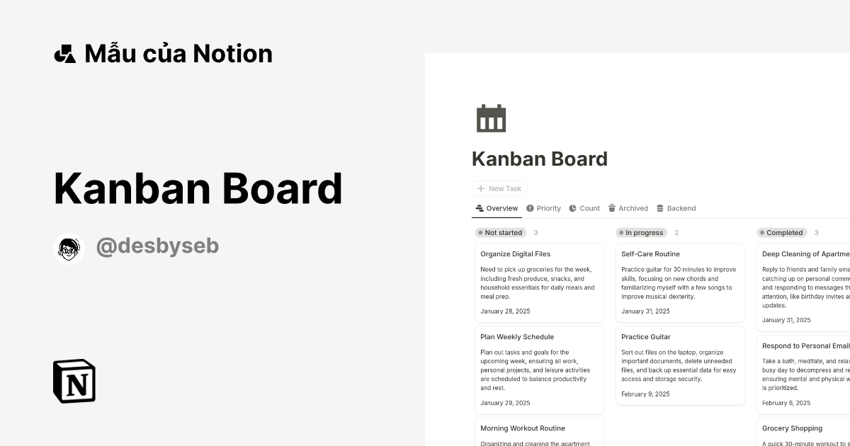 Kanban Board Mẫu do desbyseb tạo Thị trường Notion