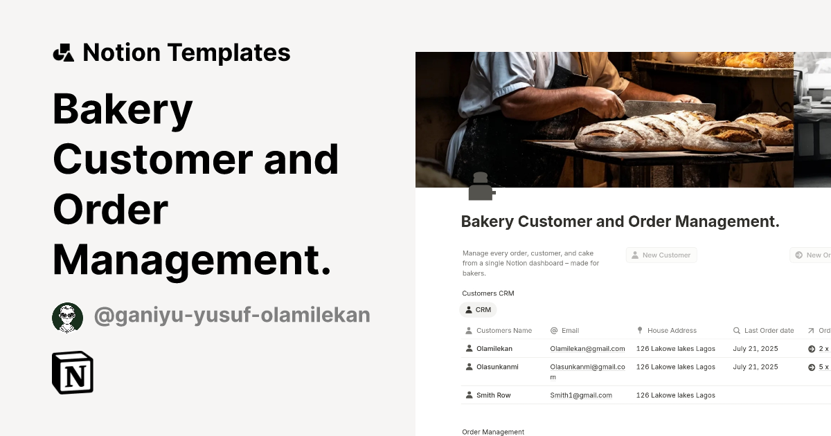 Bakery Customer and Order Management Template Notion Marketplace