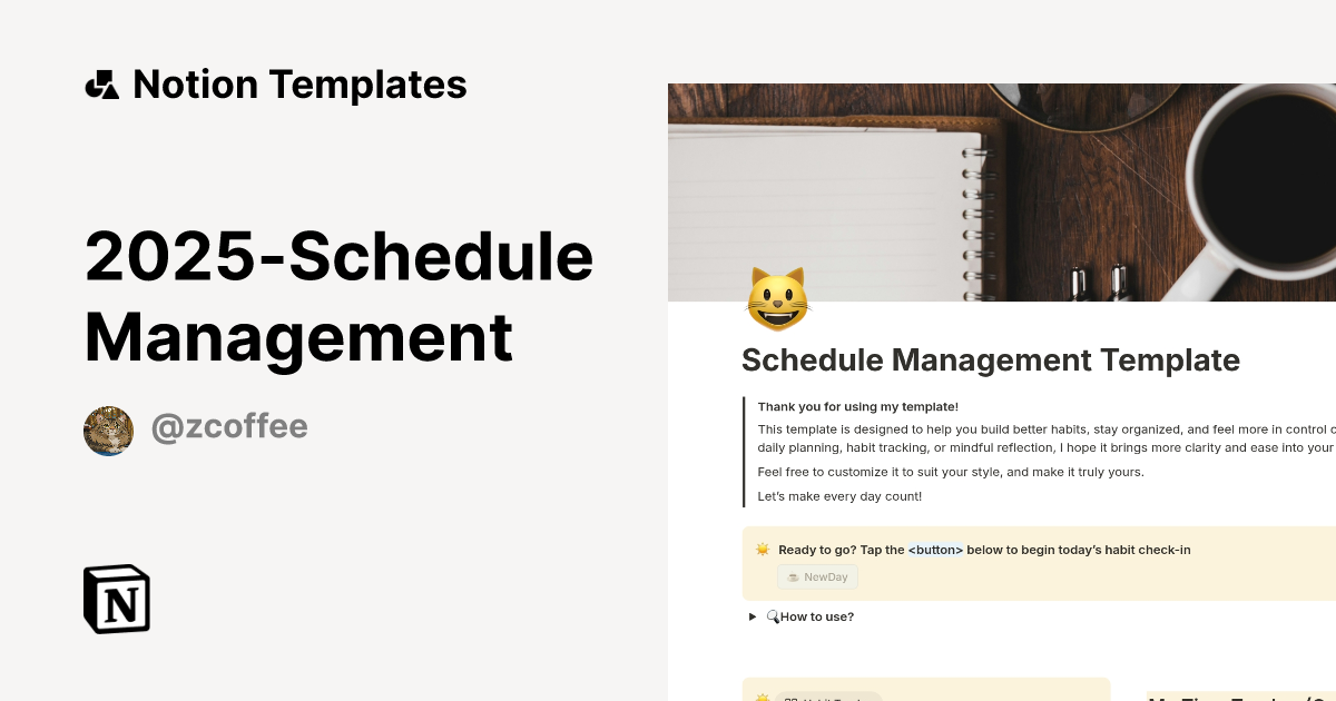 2025 Schedule Management Template by Zcoffee 张咖啡 Notion Marketplace