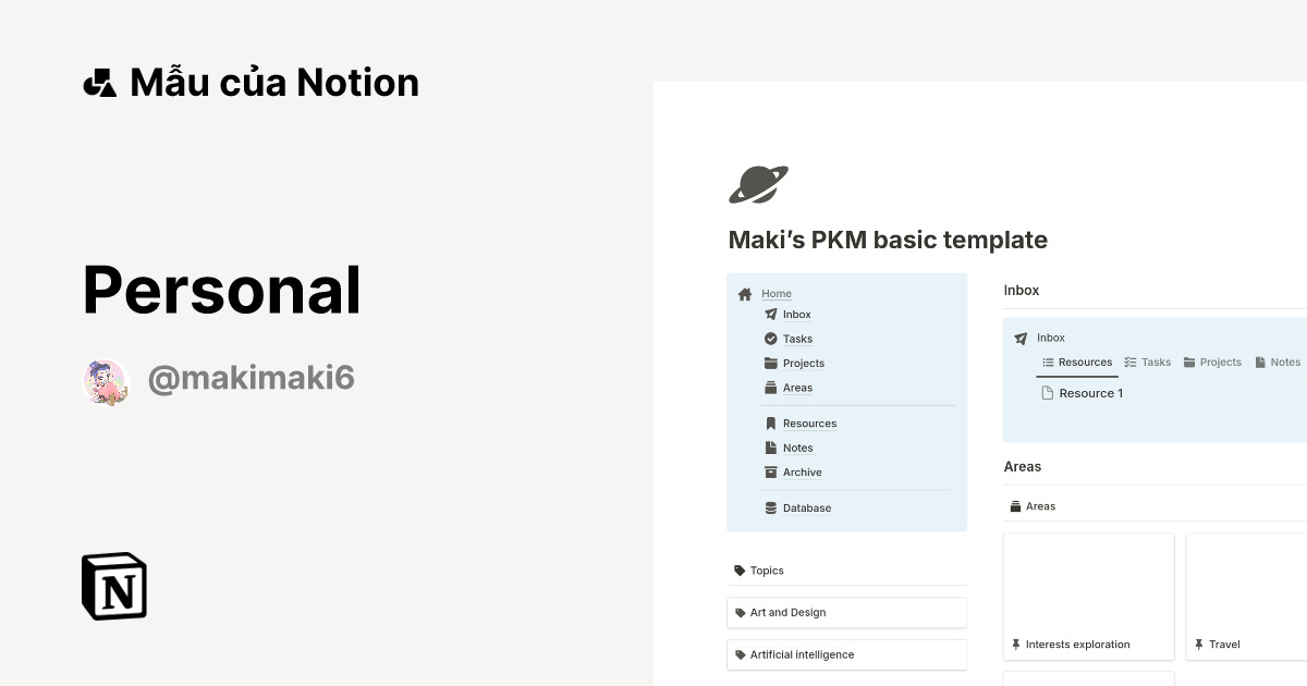 Personal Mẫu do makimaki tạo Thị trường Notion