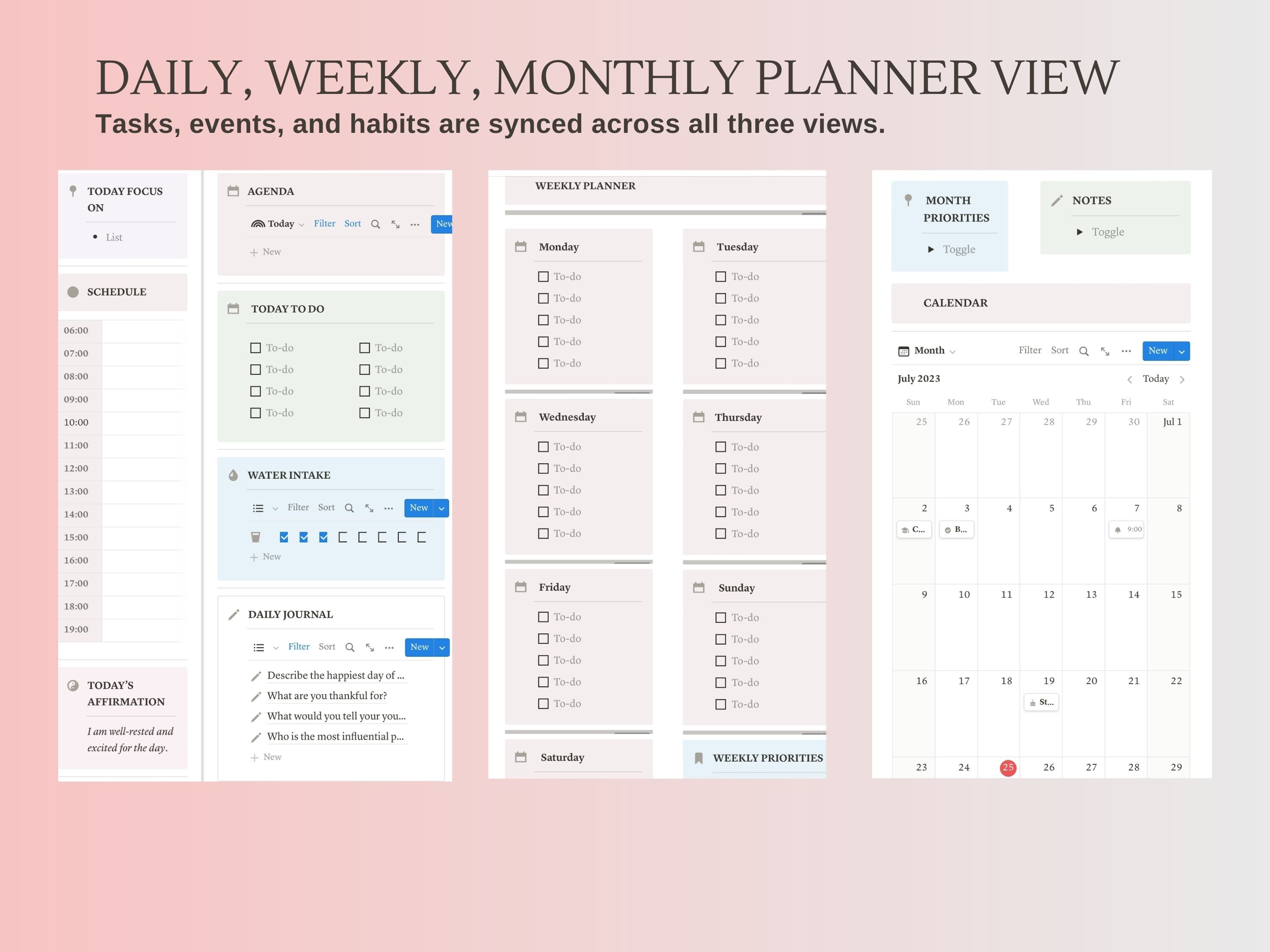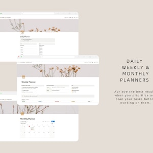 Notion Planner with daily weekly monthly and yearly organization