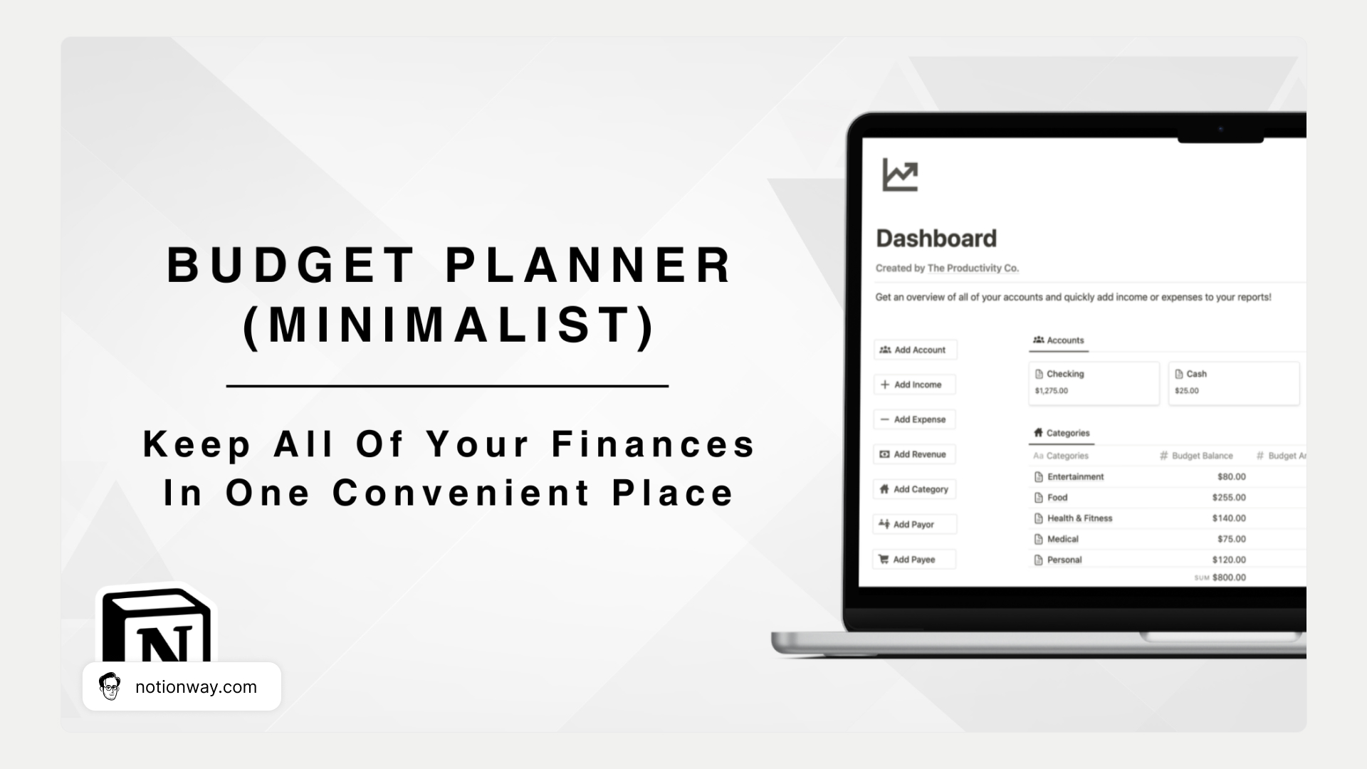 Notion Budget Template Monthly Finance Planner Income / Expense and