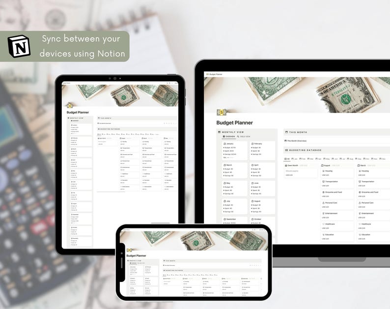 Monthly Budget Template for Notion Etsy