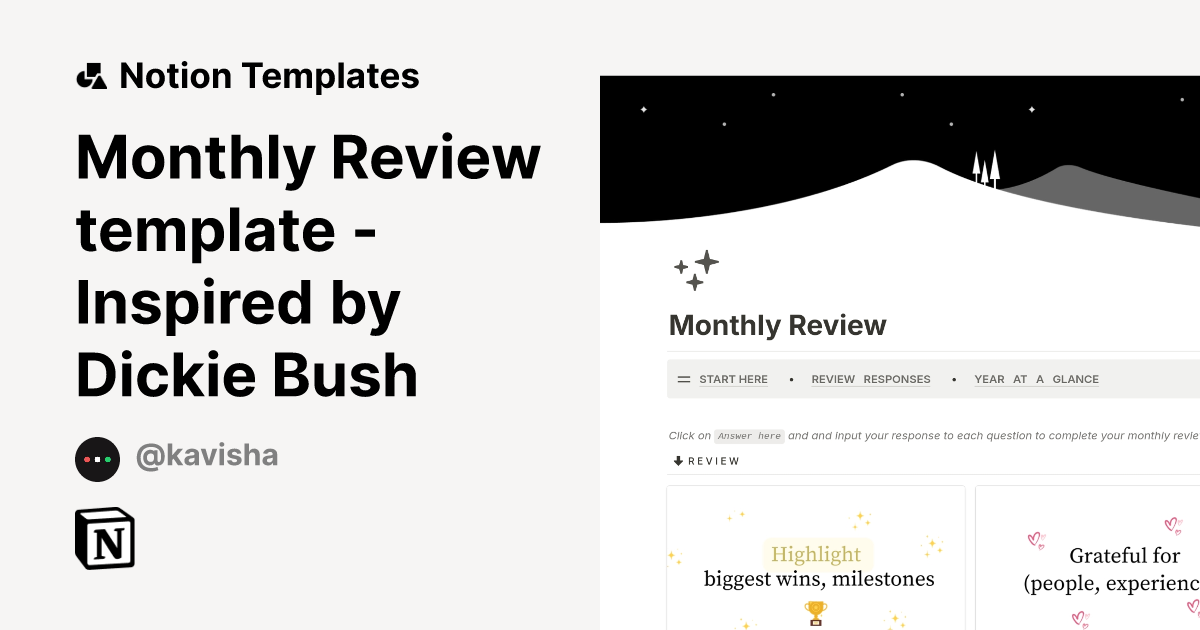 Monthly Review template Inspired by Dickie Bush Template by Kavisha