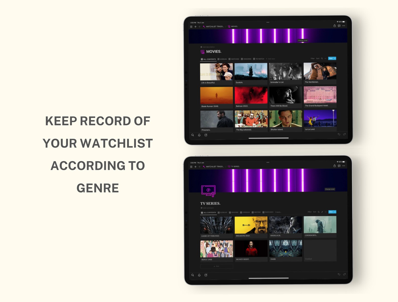 Notion Template Movie Planner Notion Dashboard Digital TV Show