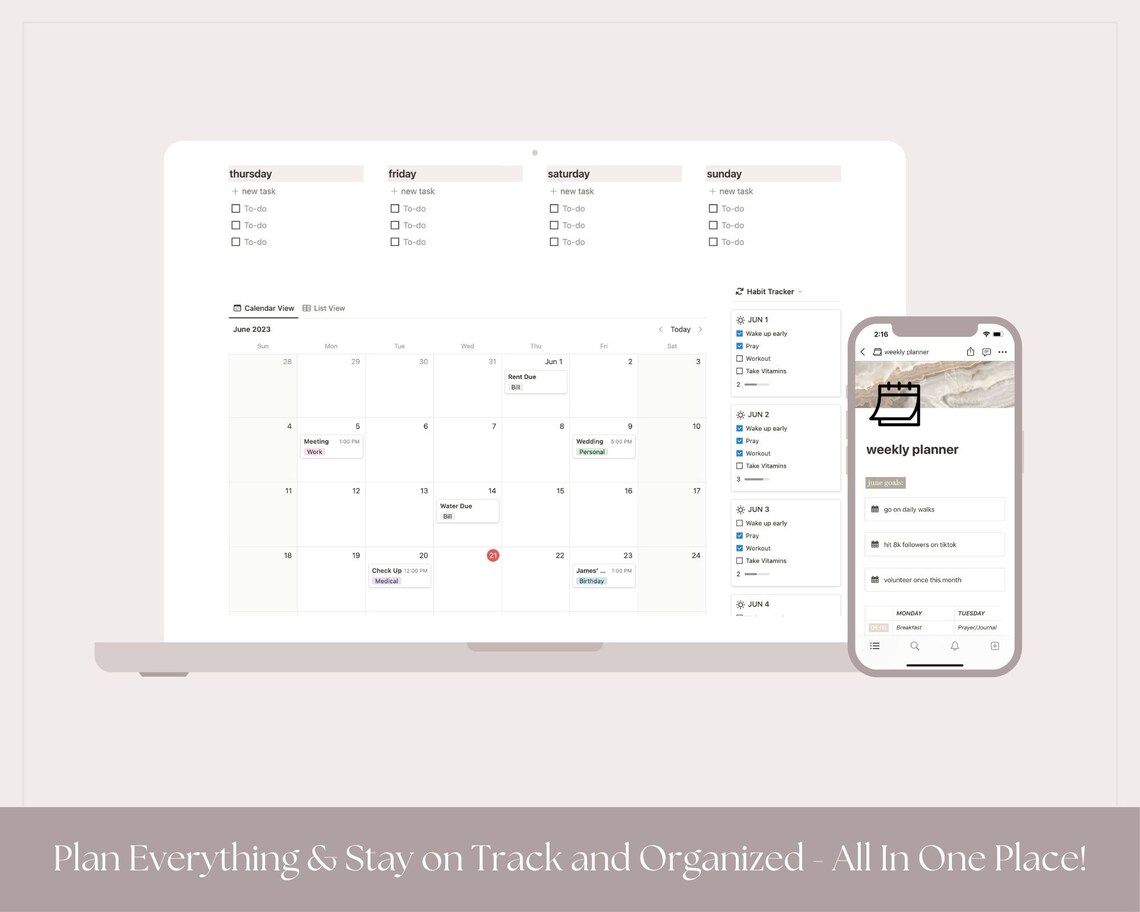 Notion Planner Template Digital Life Planner Agenda Calendar Habit