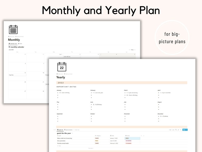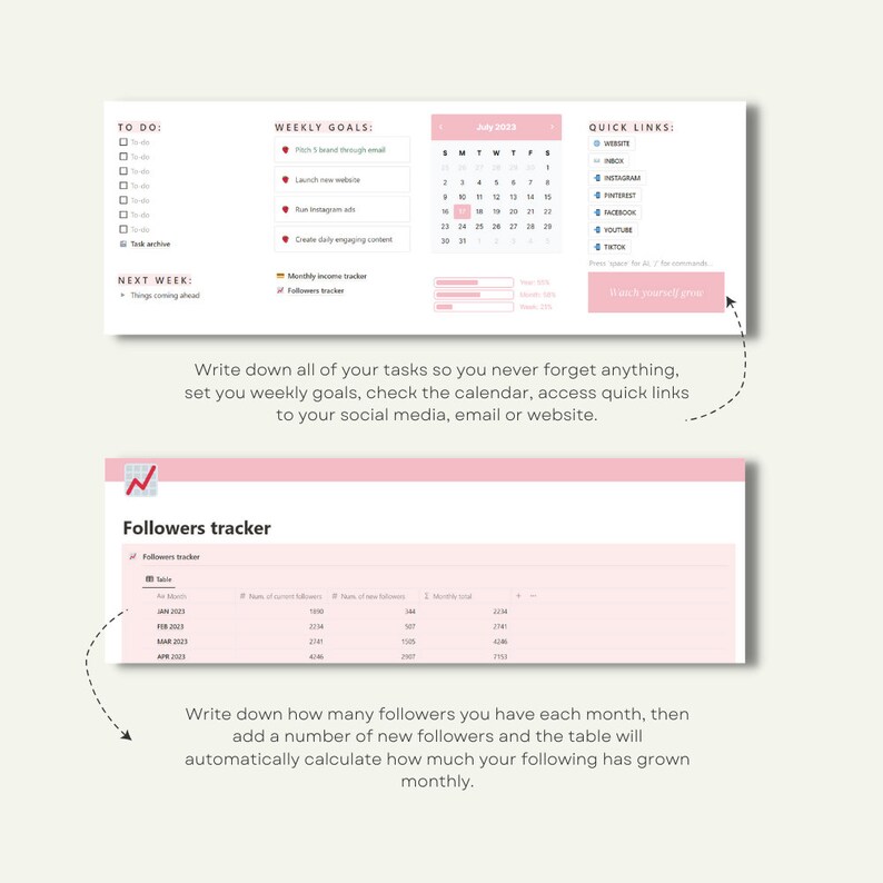 Pink Notion Template Productivity Planner Notion Goals Planner Notion