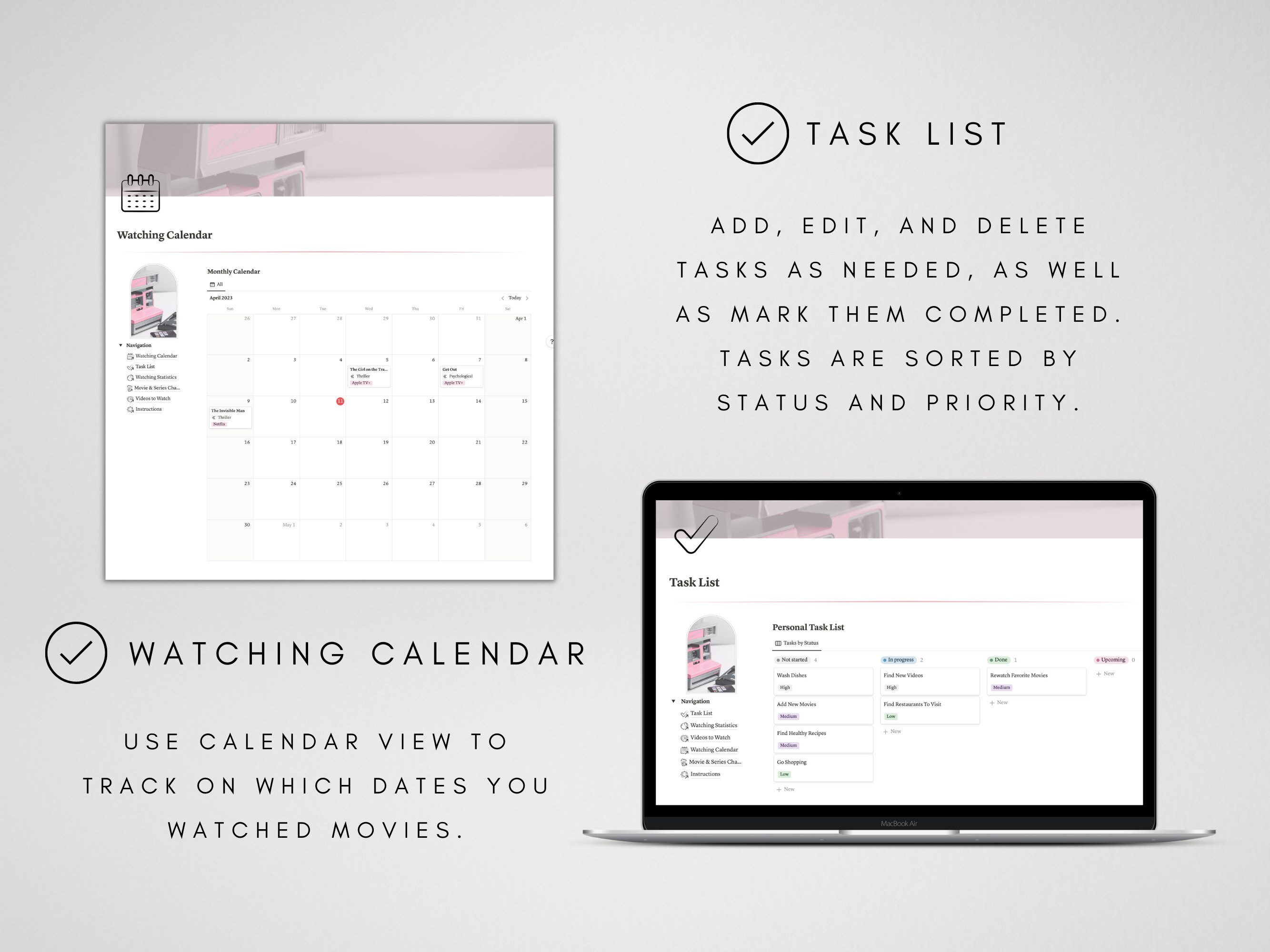 Movie TV Show Tracker Notion Template Digital Household Planner