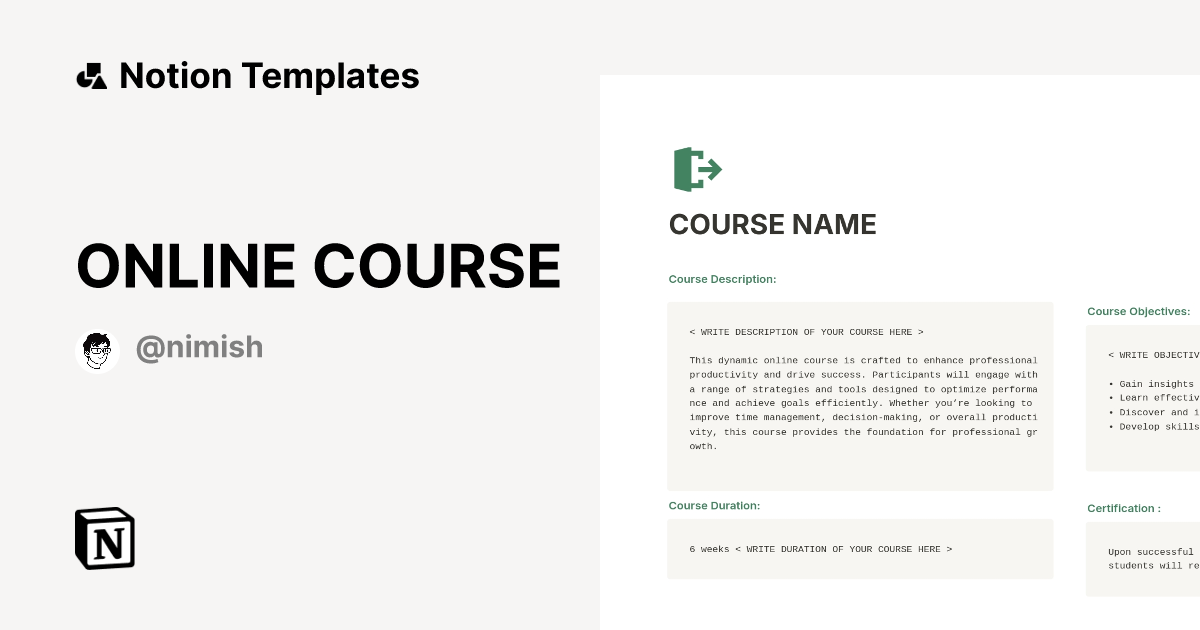 ONLINE COURSE Template by NIMISH Notion Marketplace