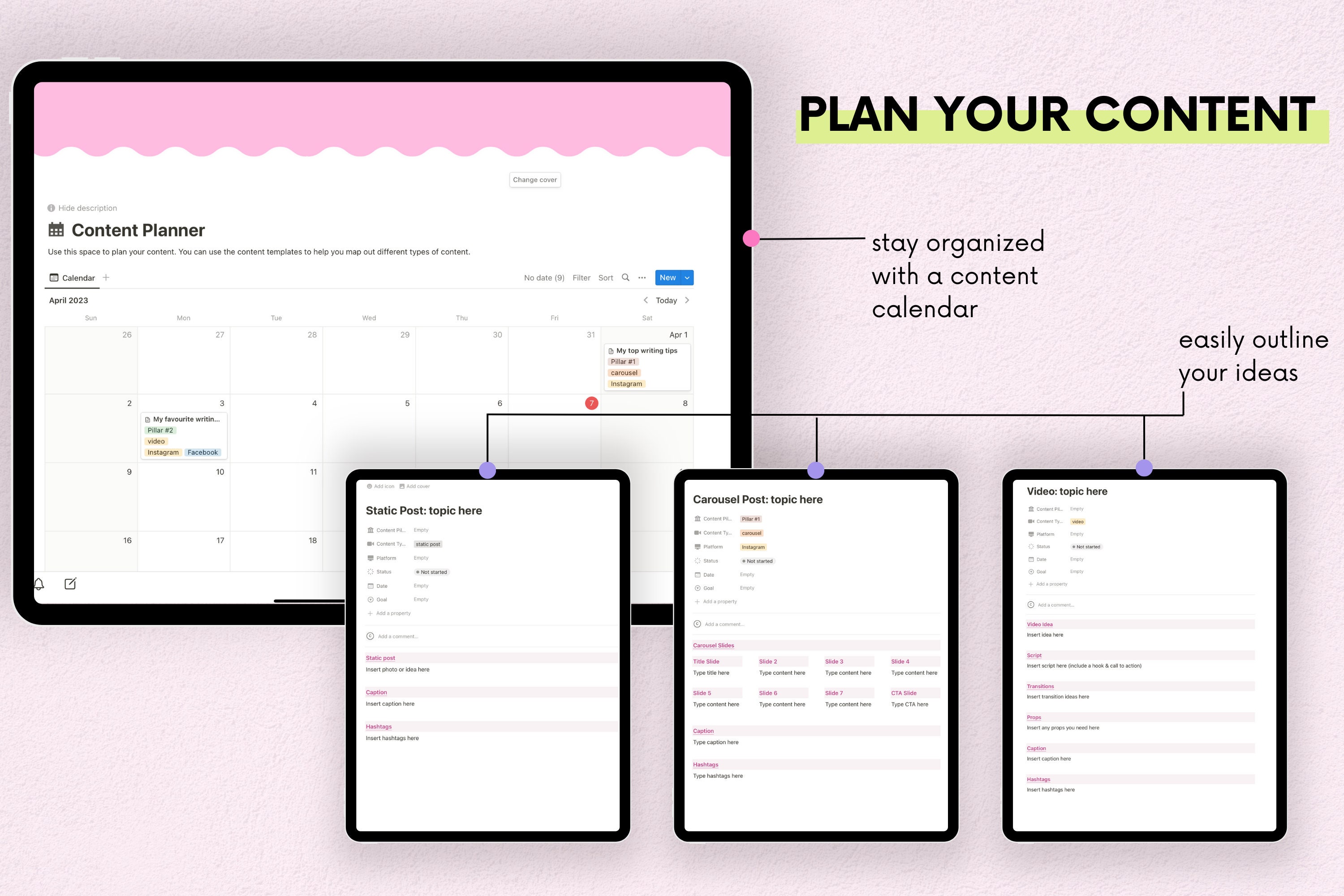 Notion Template Pink Etsy