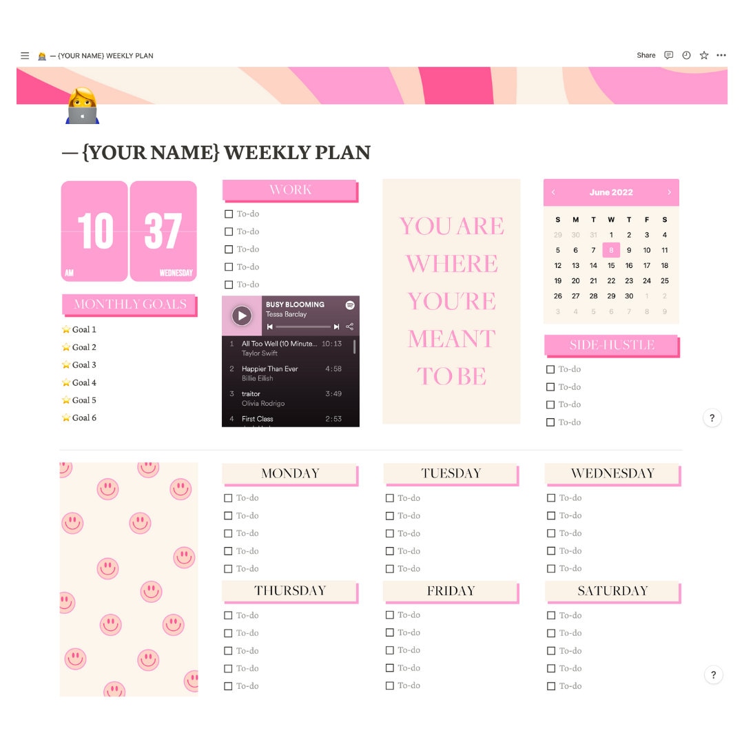 FREE Weekly Spread (Pink ver ) Simple Template : r/Notion