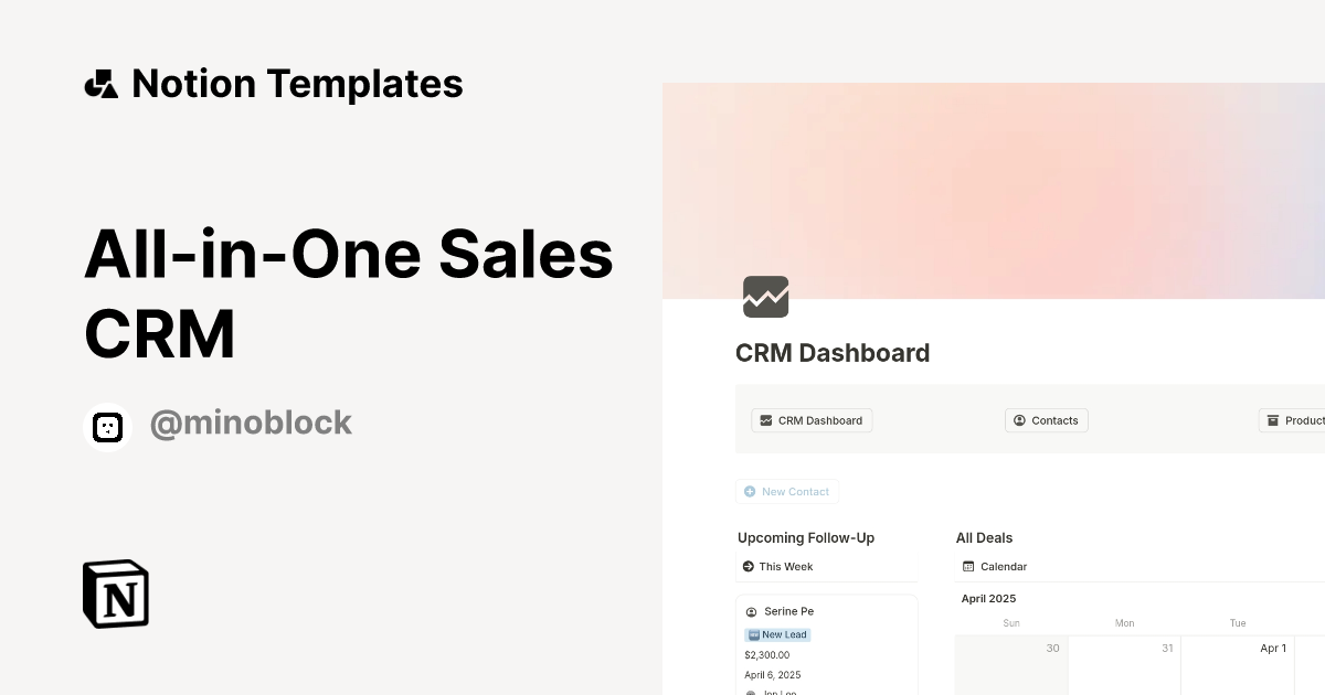 All in One Sales CRM Template by minoblock Notion Marketplace