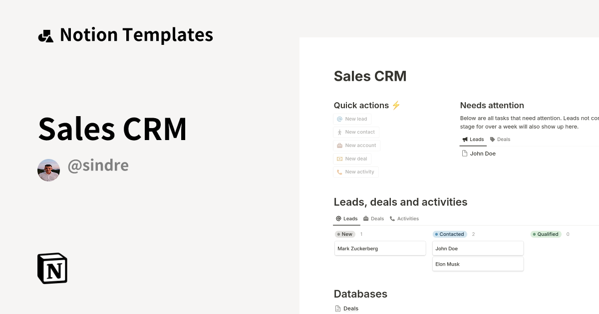 Sales CRM Template by Sindre Fjellestad Notion Marketplace