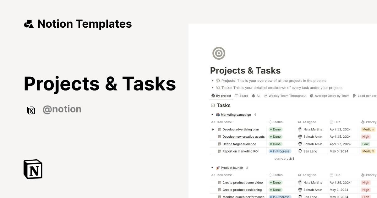 Projects Tasks Template by Notion Notion Marketplace